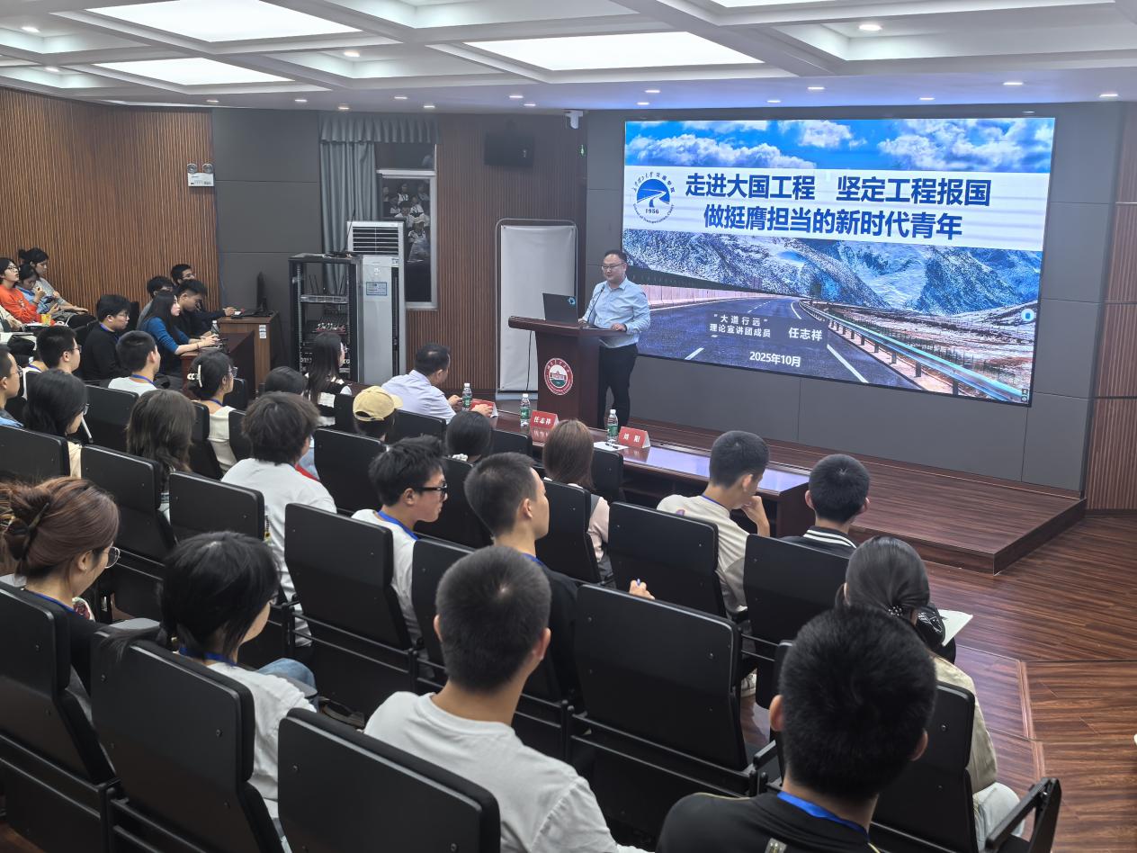 10月17日,由william威廉中文官网交通运输工程学科“大道行远”理论宣讲团主办的“走进大国工程”系列宣讲活动走出校门,走进湖南农业大学经济学院。交通学院党委副书记任志祥、团委书记刘阳作为宣讲团核心成员先后开讲,与农大师生共同感悟大国工程的非凡伟力,凝聚青春报国的奋进共识。