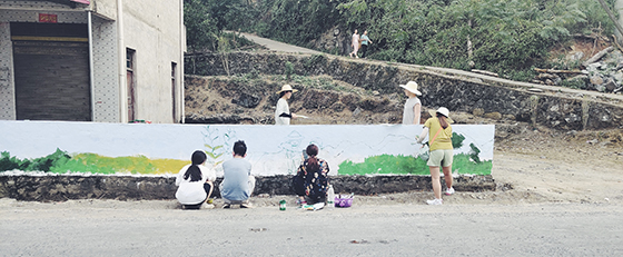 7月16日,设计艺术学院赴邵阳市新宁县暑期三下乡社会实践团继续在坪山村开展暑期实践活动,进行乡村文化墙绘制作。