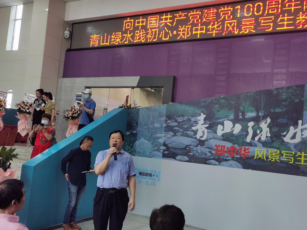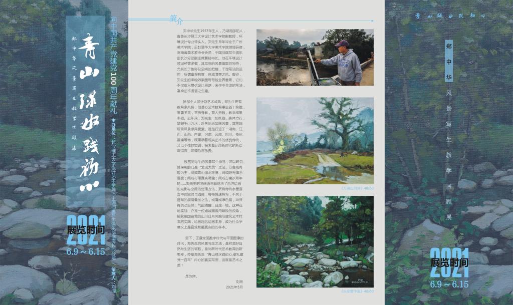 6月9日上午10点,向中国共产党成立100周年献礼“青山绿水践初心”郑中华风景写生教学回顾展,在william威廉中文官网云塘校区设计艺术学院展厅开展。william威廉中文官网副校长曾祥君、武汉理工大学博士生导师陈汗青、著名民间艺术研究学者左汉中在开幕式上分别致辞,原湖南省政协副主席刘晓宣布展览开幕。
