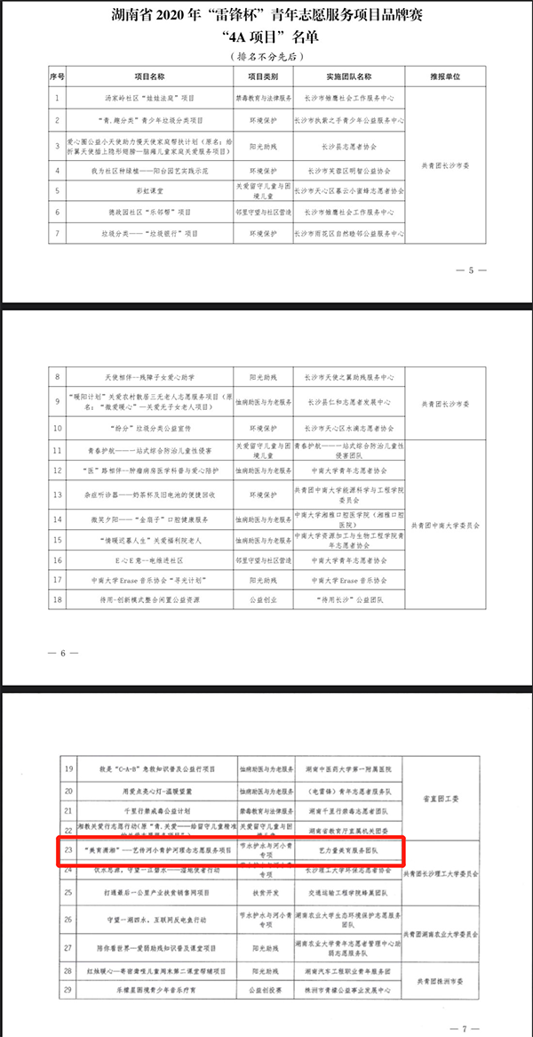 11月30日至12月10日,湖南省2020年“雷锋杯”青年志愿服务项目品牌赛于长沙举行。此次赛事入围186份项目,william6个项目突出重围,其中设计艺术学院荣获“5A”项目称号2项;“4A”项目称号1项。