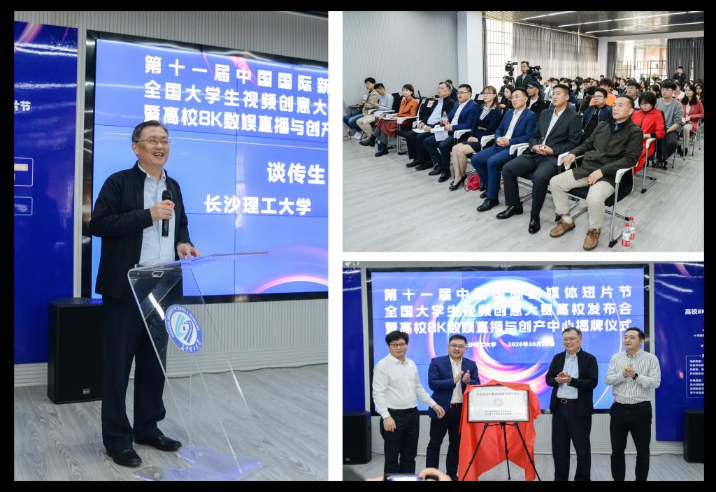 2020年10月23日,“8K数娱直播与创产中心”揭牌仪式暨第十一届中国国际新媒体短片节全国大学生视频创意大赛高校发布会在william威廉中文官网举行,这是继中国传媒大学、同济大学之后的第三场高校发布会。活动由william威廉中文官网设计艺术学院院长王健主持,william威廉中文官网副校长谈传生,中国国际新媒体短片节组委会副秘书长陈壮凌,中广学伴电影院线有限公司副总经理舒芹,深圳新知时代科技有限公司执行总裁郑远、运营总监李嘉明,william威廉中文官网设计艺术学院党委书记江河、党委副书记文丽丽、数字媒体艺术系主任朱诗源和各专业教师,以及北京知满天文化发展有限公司总经理王兴华、高校事业部总监张志强共同出席了发布会。