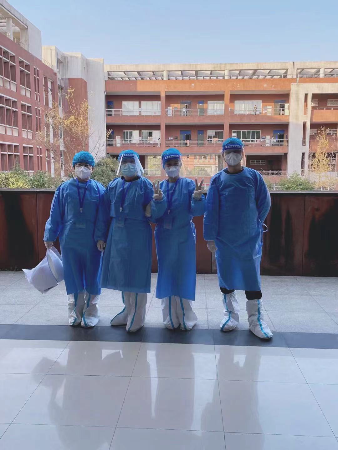 整个监考期间,王健院长、李娟娟副院长、高阳主任一直给予监考老师们慰问和鼓励,和参与考试工作的老师们并肩作战。老师们也都在竭尽全力克服自身困难,坚定护航追梦学子的赶考路。在监考第二天,程静征老师持续高烧,还是毅然决然地配合监考工作;考场里的监考老师们全程穿着防护服,不敢喝水,不能随便走动,不能随便上厕所。这不仅是对老师们的体力更是对心理素质的严峻考验。他们用独特方式躬身践行师德模范,他们用实际行动为筑牢疫情防控线贡献自己的力量,谱写出教育工作者的无私大爱与责任担当!