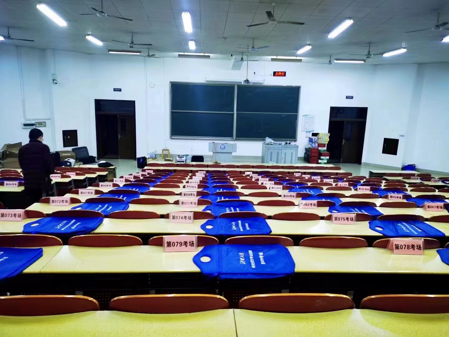 监考工作由设计艺术学院党委书记李伟、正处级组织员施频全程带队,刘帅、何蕾、欧阳乃馨、商亦然、莫武刚、赵晖、龙秀娟、 郭丹、施频、江楠、程静征、王忠、李慧 、张帅、王玲、文卫民、游金、尹无瑕、赵骞远、黄慧一行22位老师担任起了护考重任。其中李伟、施频、王玲、文卫民、游金、尹无瑕、张帅7位老师尽管在身体不适的情况下依然奔赴了“特殊考场”。所有监考员、考务人员不惧被感染的风险,监考第一天全部按时到岗,无一人请假,充分体现了老师们在苦难面前的空前团结和上下同欲的大局观念。