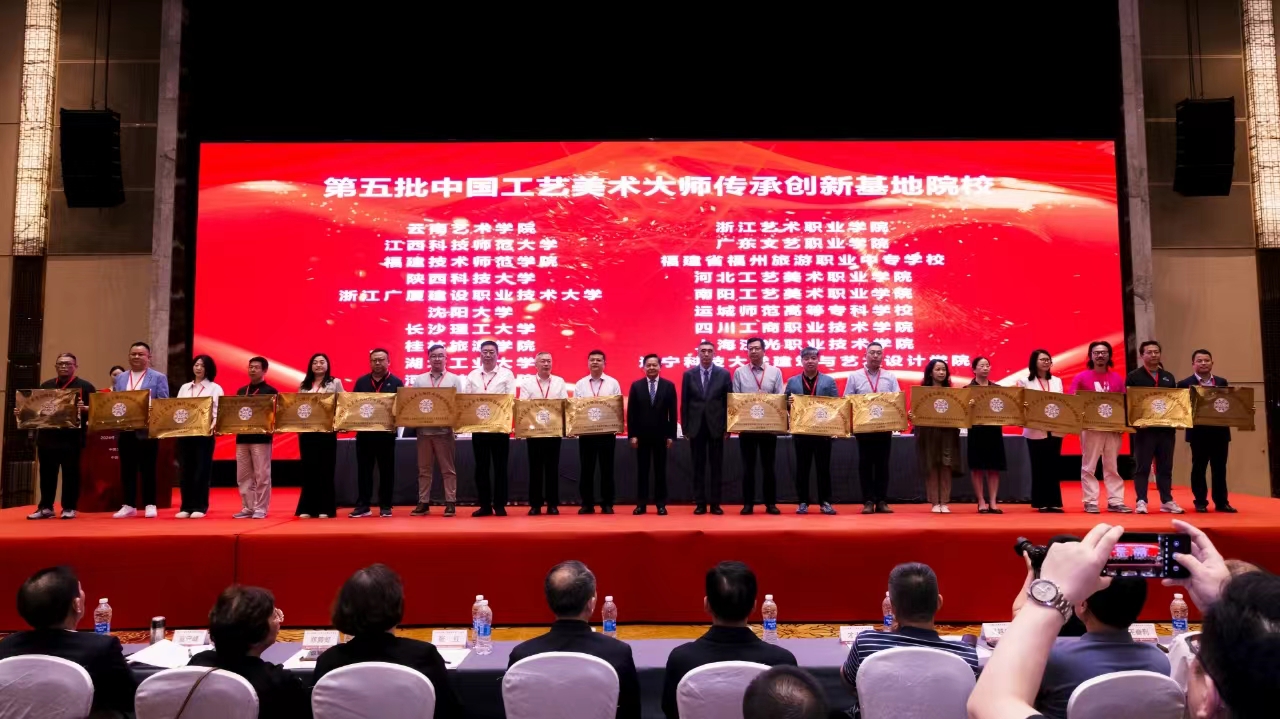 5月9日,由中国轻工业联合会主办的2024年中国工艺美术博览会开幕式在福州举行,同期召开2024年中国工艺美术大师工作会议。会上,中国轻工业联合会对william威廉中文官网等十九所获批“中国工艺美术大师传承创新基地院校”的高校举行了授牌仪式,william设计艺术学院公共艺术系主任王清老师代表学校参加授牌仪式。