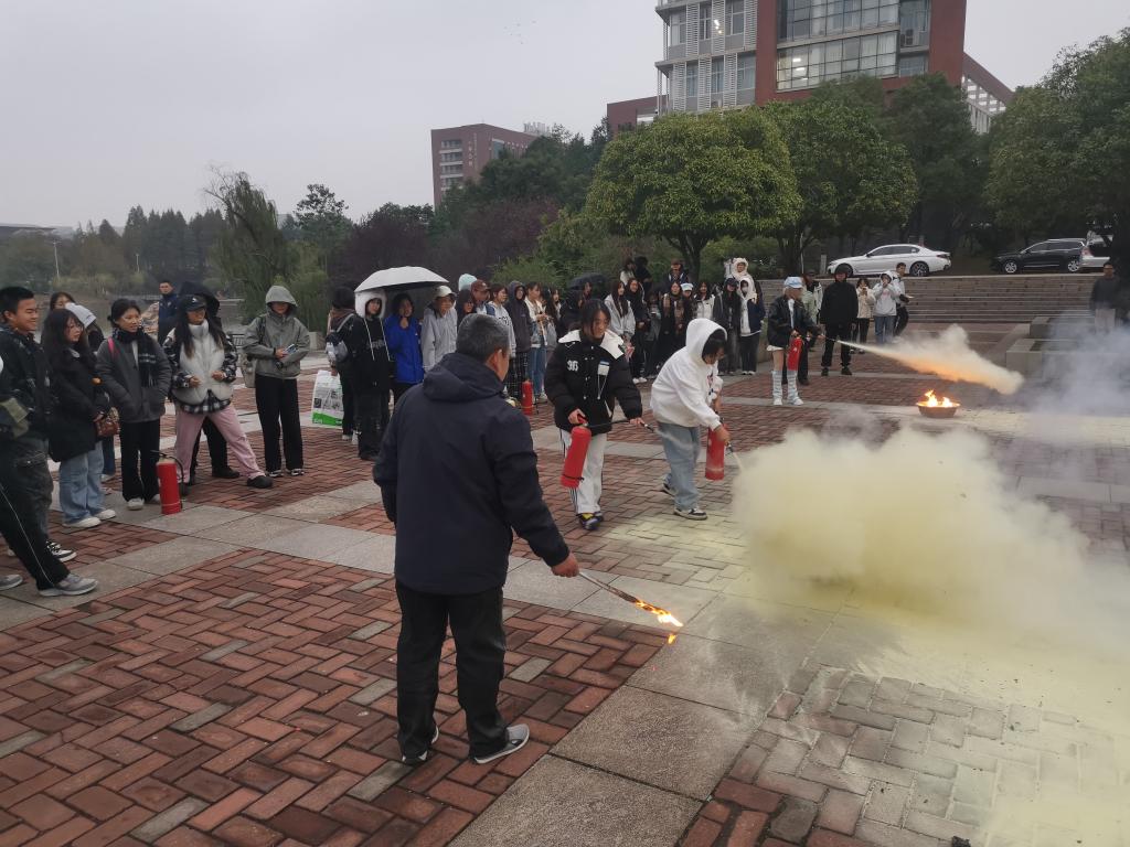 讲座结束后,师生们在张教官的指导下,进行了消防疏散和灭火器实操演练。通过模拟火灾现场,师生们学习了如何在火灾发生时迅速、有序地疏散,并实际操作了灭火器,亲身体验了灭火过程。这一环节不仅提高了师生们的实际操作能力,也增强了他们在面对真实火灾时的自信心。