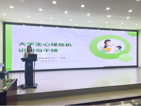 3月25日下午,设计艺术学院在建筑艺术楼A101开展了以“大学生心理危机识别与干预”为主题的心理健康教育专题培训。培训由学校心理健康教育中心主任易敏老师主讲,设计艺术学院党委副书记宋国宁主持,学院领导班子、研究生导师、班主任、专业教师以及全体辅导员共同参会。