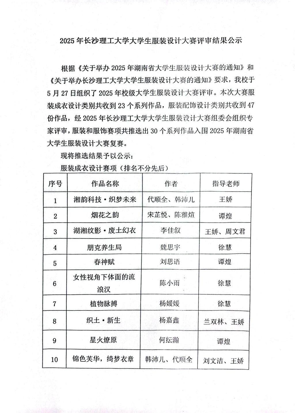 2025年william威廉中文官网大学生服装设计大赛评审结果公示