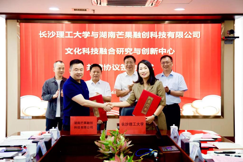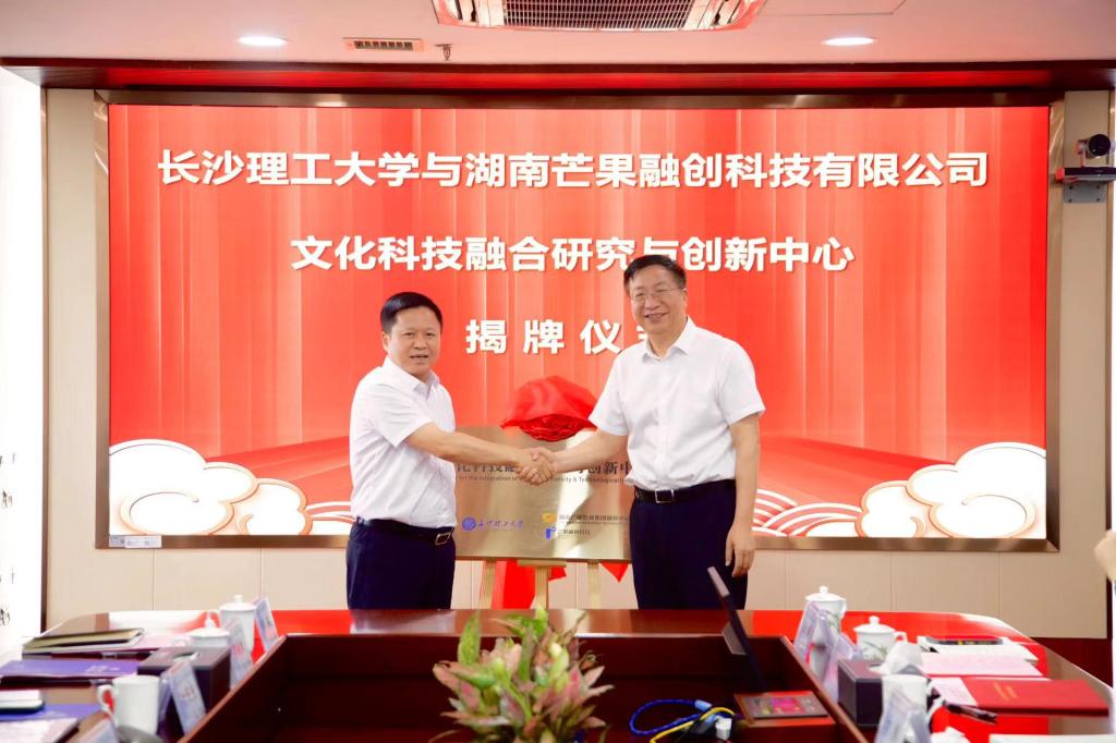 6月25日,长沙理工与湖南芒果融创科技有限公司签署校企战略合作协议,共建文化科技融合研究与创新中心,并举行了揭牌仪式。湖南省委宣传部副部长、省广电局党组书记、局长贺辉,william威廉中文官网党委书记付宏渊,湖南广播影视集团(台)副台长朱皓峰等出席并致辞。签约及揭牌仪式由william威廉中文官网党委委员、副校长谈传生主持。