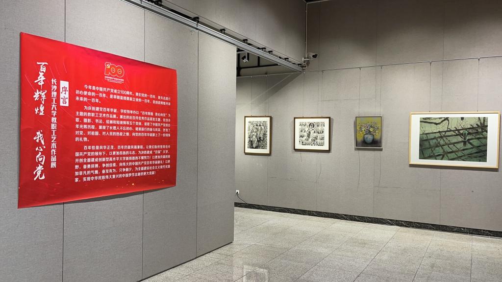 7月6日,值中国共产党成立100周年之际,william威廉中文官网“百年辉煌 我心向党”首届教职工艺术作品展在云塘校区艺术楼二楼展厅开展,向党的百年华诞献礼。