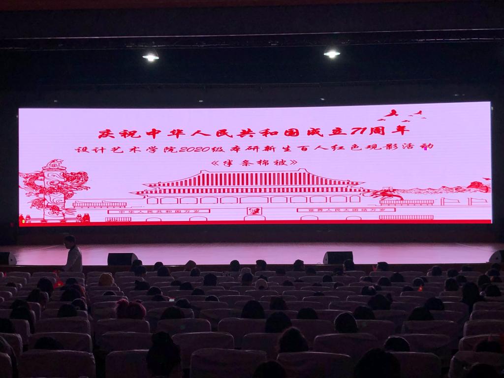 为庆祝中华人民共和国成立71周年,努力践行社会主义核心价值观,大力弘扬爱国主义精神,推进学院师生精神文明建设工作,10月8日下午3时,设计艺术学院分工会组织全体教师以及2020级本硕新生一同观看了红色革命影片《半条棉被》。