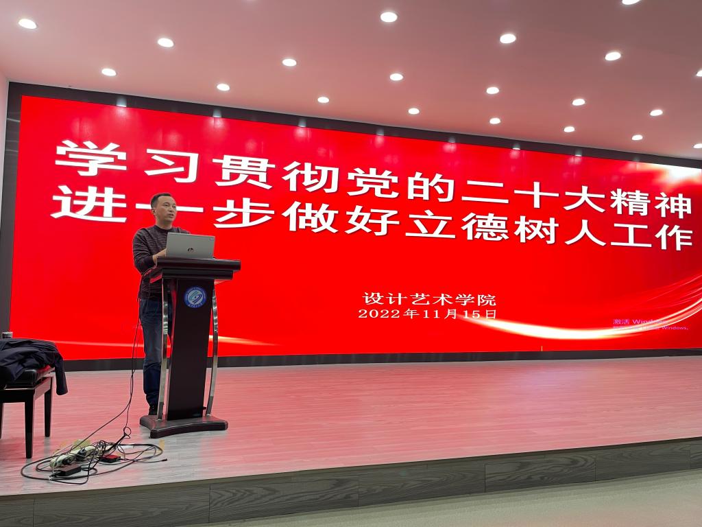11月15日下午,设计艺术学院在艺术楼学术报告厅召开了2022年第五次全院教职工大会,会议主题是学习贯彻党的二十大精神,进一步做好立德树人工作。会议由院党委书记李伟主持,全体教职工参加会议。