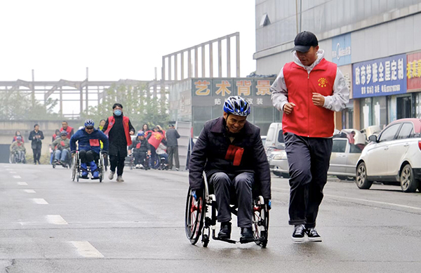 此活动旨在增强残疾人身体素质,丰富业余生活,展示其健康向上的精神风貌。在志愿者陪同下参赛选手到达现场熟悉赛道及比赛规则,为求在比赛中更好的发挥自身潜能。在赛场上,残疾人选手在志愿者的协助下,手握轮椅、奋勇向前,滑动轮椅冲向终点。与此同时,志愿者们也保持高度热情为他们的安全保驾护航,携起手来共进退,经过激烈的争夺八名参赛人员脱颖而出。赛后,活动负责人对参与活动的17位志愿者表示高度认可并颁发志愿者证书。