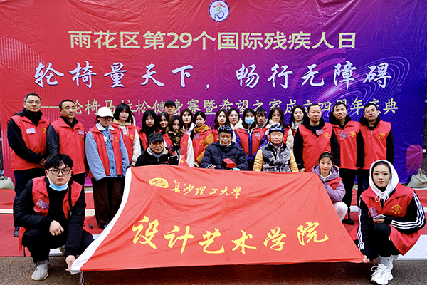 12月3日,“轮椅量天下,畅行无阻碍”轮椅马拉松健身赛于长沙市雨花区蓝天建材城顺利举办。此次活动由实践部组织开展,工美1901班黄靖怡、唐玲俐等17位志愿者参与此次活动。