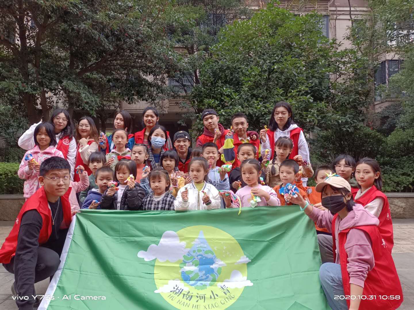 “河小青”是设计艺术学院筹办的一项公益志愿活动,主旨为“美育潇湘,守护三江四水,从我做起”!为保证本次活动的顺利进行,志愿者们早早到达现场进行布置,准备材料,不久,小朋友们陆续到来。活动正式开始,首先,由志愿者进行自我介绍,紧接着,志愿者带领小朋友们用粘土制作“河小青”卡通形象,拉近了与孩子们的距离,氛围开始变得热闹起来。随着天气转晴,活动转移到了室外公园,吸引了越来越多的小朋友加入其中,场面十分和谐,小朋友们的作品也都各具特色,充满新意。最后,参加本次活动的全体人员进行合影留念。