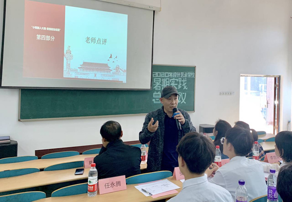 会议伊始,首先由实践部学生干部高驰汇报2020年暑期实践情况及本次评选细则。紧接着,各团队依次上台介绍,每个团队代表都以PPT的形式,为大家展示了实践的目的、成果及感悟。其中不乏众多引人注目的项目,如为乡村儿童搭建娱乐设施、为儿童们带来多彩的课外活动、为乡村民宿与道路建设进行规划。每个项目都为乡村和家乡的建设与发展做出了贡献。随后,由邓韩松和莫武刚老师进行会议总结,两位老师提出一致观点:作为艺术学子,更应该用自己的创造力与宣传力,将技术与艺术相融合,将调研落到专业上,做更多有意义的事情。会议最后,所有参会人员合影留念。