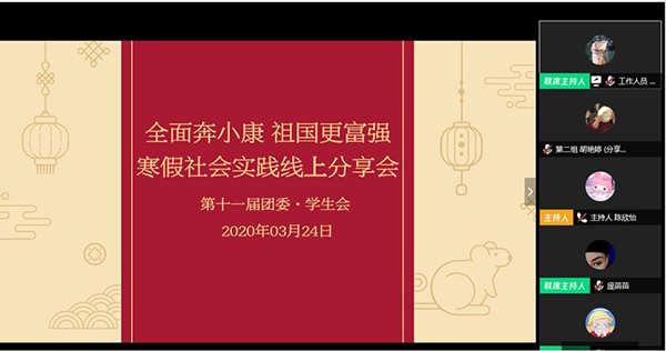 本次第十一届团委学生会线上寒假实践工作分享会的成功开展,培养了学生会干部的综合素养。从本质上提高了学生干部的自觉性和主动性,加强了干部间的相互学习以及团队的合作能力,为日后的工作奠定了坚实的基础。