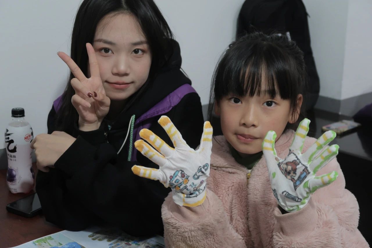 健康的生活离不开卫生的保驾护航。志愿者们将卫生健康理念融入日常小课堂,为孩子们的身体健康而努力。通过卫生健康内容的讲解,可以让小朋友加深自我保护的意识,为自我成长保驾护航。在课堂上,小朋友们积极回答问题,发表自己独特的看法,收获大家的点赞。第二个环节是手工实践,在明亮温暖的社区里,每个小朋友都有暖心志愿者的陪伴,他们一起围着桌子,在空白的手套上作画。他们每个人都充满了专注和兴奋。志愿者们和小朋友们在享受他们的创作过程,他们互相欣赏着对方的作品,互相鼓励,所有人脸上都洋溢着自豪和满足。他们通过自己的努力和创造力,创造出了属于自己的艺术作品,并在这个过程中体验到了成功的喜悦和自我实现的快乐。最后合影留念。