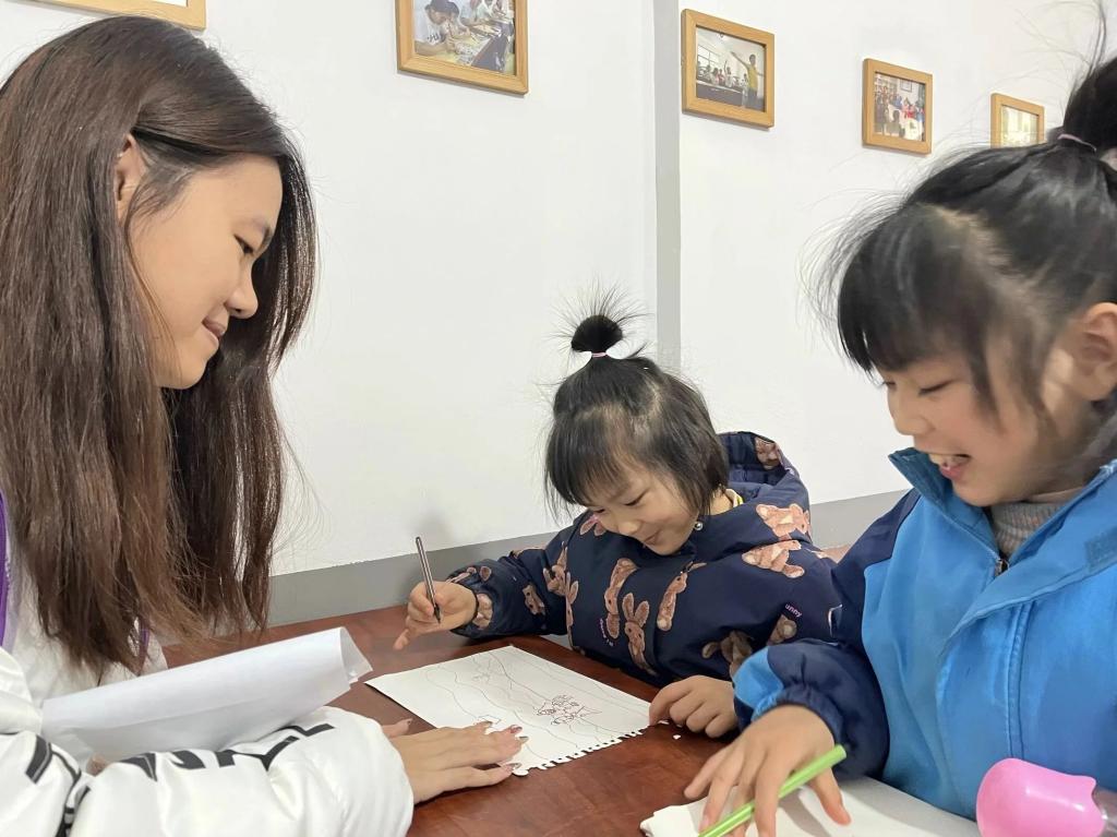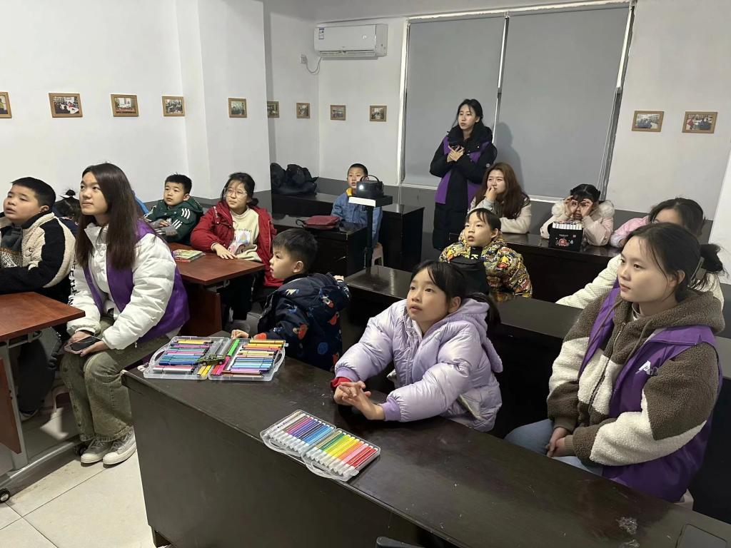 冽冽寒冬,莹莹篝火。寒冷的冬季里,志愿者们与小朋友们一起相聚在温暖的教室。为小朋友讲述了关于童谣的知识,激发了小朋友们极大的兴趣,以及小朋们对童谣的想象力。童谣乐园,快乐起航。紧接着,小朋友在志愿者的引导下唱童谣,一起徜徉在童谣的海洋中,每个小朋友的脸上都充满着对童谣的喜爱,童谣带给小朋友们快乐,也让他们更加感受到了童谣的魅力。接下来,小朋友们进入想象的世界里,通过对童谣的想象,在画纸上落笔画下属于自己的童谣故事,志愿者们为孩子们尽心尽力地指导和辅助,为每一个孩子的保驾护航,志愿者们的辛勤付出,换来了孩子们一张张纯真的笑脸。