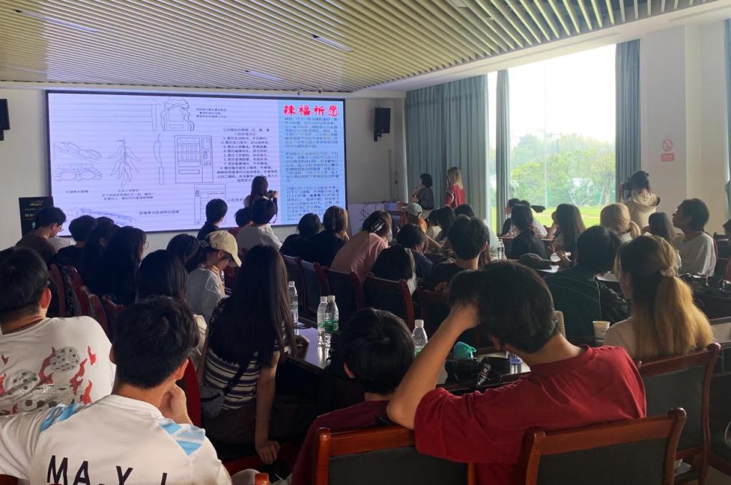 同学们首先参观了柳庄景区左宗棠故居,了解民族英雄事迹,感受湖湘文化的魅力。随后前往现代设施农业健康蔬菜种植基地暨湘阴县樟树镇友谊村开展乡村风貌和现代设施农业调研。基地负责人介绍了设施农业相关知识,班主任邓寒松以“设施农业场景中的景观艺术设计”为题举行了学术讲座,针对樟树港种植基地的文旅体验观光设计研究项目和同学们进行了交流讨论。胡灵珊、陈简妮、武昕沂三位同学还讲解了为该基地设计创意的打卡点景观装置方案。同学们普遍认为,科技结合艺术,数字化智能化的景观设施是满足现代设施农业基地开展农业观光及体验的设计趋势。并以此为出发点,因地制宜为该设施农业基地创作满足文旅功能的艺术设计作品。