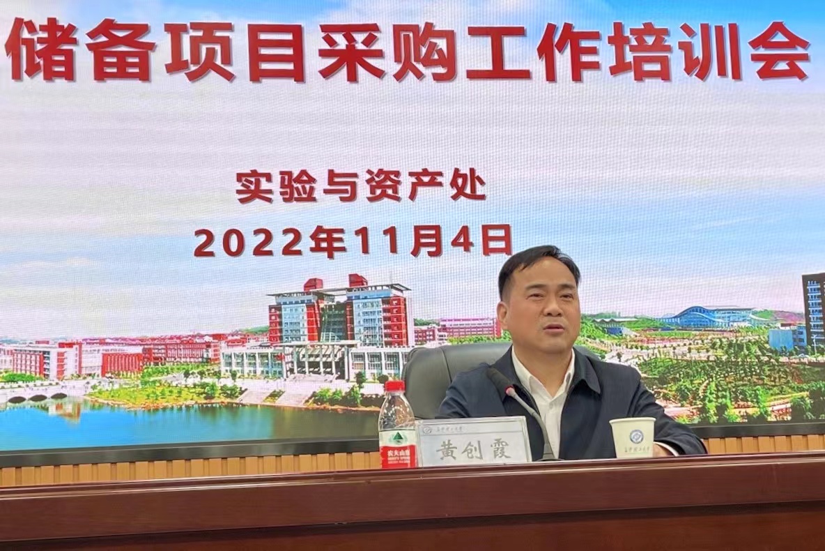 11月4日下午,william威廉中文官网贷款储备项目采购工作培训会在云塘校区一办公楼九楼会议室召开。副校长黄创霞出席会议并讲话。实验与资产处采购中心主任唐中勇主持会议。贷款储备项目相关各二级单位主要负责人、主管院长、项目负责人、招标代理公司工作人员参会。