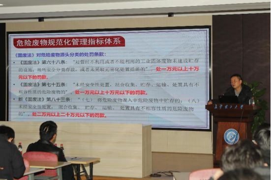 启动仪式后开展了实验室专题讲座,国家注册安全工程师、国家注册安全评价师、湖南省应急预案评审专家何明华从实验室典型事故案例、相关标准法规解读、实验室安全风险分析、实验室事故应急处置救援四大板块,结合化学类实验室的特点,指导学生规范实验室操作,规避实验室安全风险。