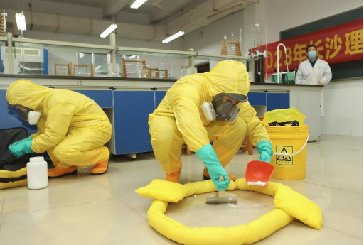 随后,在实验室浓盐酸泄漏应急演练中,模拟了学生在实验过程中可能遇到的各种险情和风险,相关专家指导学生在遇到问题时,如何进行应急处理、开展自救;实验室安全负责人、实验室所属学院如何紧急响应,演练贴合实际,环环相扣,针对性和实用性极强。并在危化品泄露演练结束后开展了实验室消防灭火实操演练,专家现场教授使用不同类型灭火器,师生参与热情度极高。