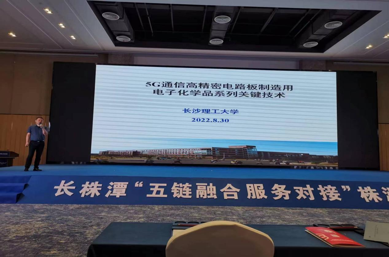 8月30日上午,william科技成果转移转化中心(知识产权中心)副主任刘亚辉陪同化学化工学院吴道新、肖忠良两位教授到株洲市中国动力谷学术交流中心参加长株潭三市“创新链、产业链、资金链、人才链、政策链五链融合”科技成果对接活动。在对接活动会上,吴道新教授以“5G通信高精密电路板制造用电子化学品系列关键技术”为题作项目路演,该项技术得到了相关企业和投资方的广泛关注,路演结束后,有企业和投资方主动找到吴教授了解该技术的具体情况和留下联系方式。