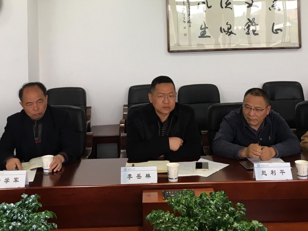 杜良忠首先向刘望平主任一行来william调研表示热烈欢迎,并简要介绍了学校的基本情况。随后李岳林详细介绍了学校的专业优势、科研水平、产学研合作情况以及成果转化中心的职能,并期望能与宁乡市进行实质性的合作。徐学军、赵利平分别给出了相关建议。