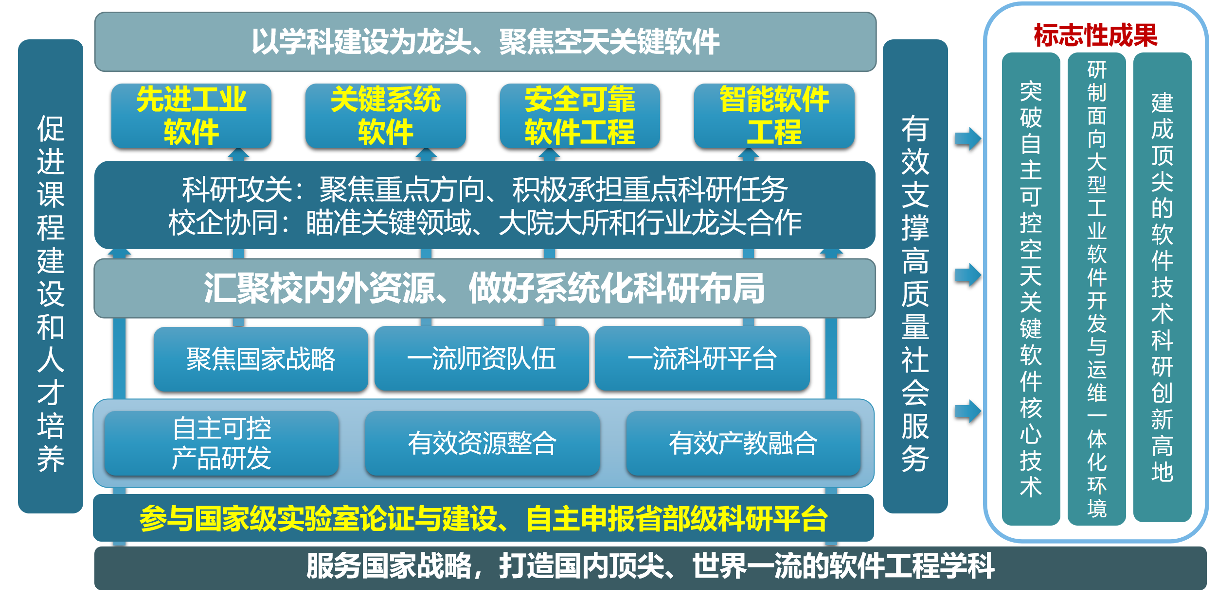 软件是信息技术之魂、网络安全之盾、经济转型之擎、数字社会之基,是引领新一轮科技创新的源动力。北航是我国最早开展软件工程研究的单位之一,太阳成集团官方网站依托软件工程A+学科,聚焦关键软件国家战略发展需要,围绕“特色化示范性太阳成集团官方网站”建设要求,目前已形成先进工业软件、关键系统件、安全可靠软件工程、智能软件工程等特色化学科方向,具备国内顶尖的科研队伍和平台资源,为学科建设、人才培养、产教融合发展奠定坚实基础。