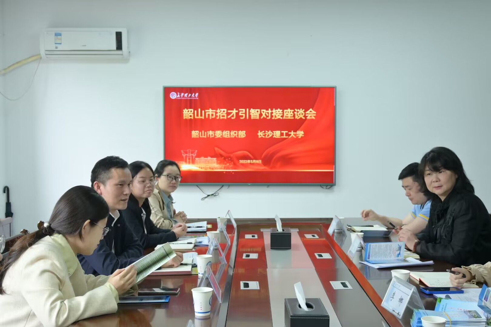 5月8日上午,韶山市委组织部常务副部长赵尚荣一行和沅江市委宣传部常务副部长吴波一行来william商谈招才引智工作,招生就业处处长曹瑛、副处长李娜以及梁莹老师参与座谈交流。会议由招就处处长曹瑛主持。