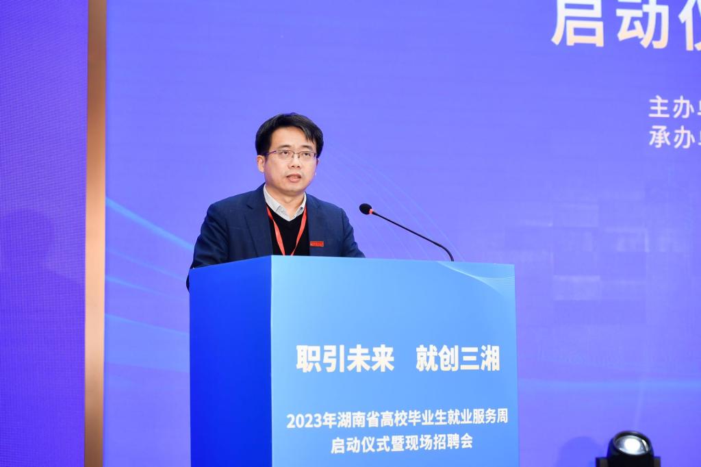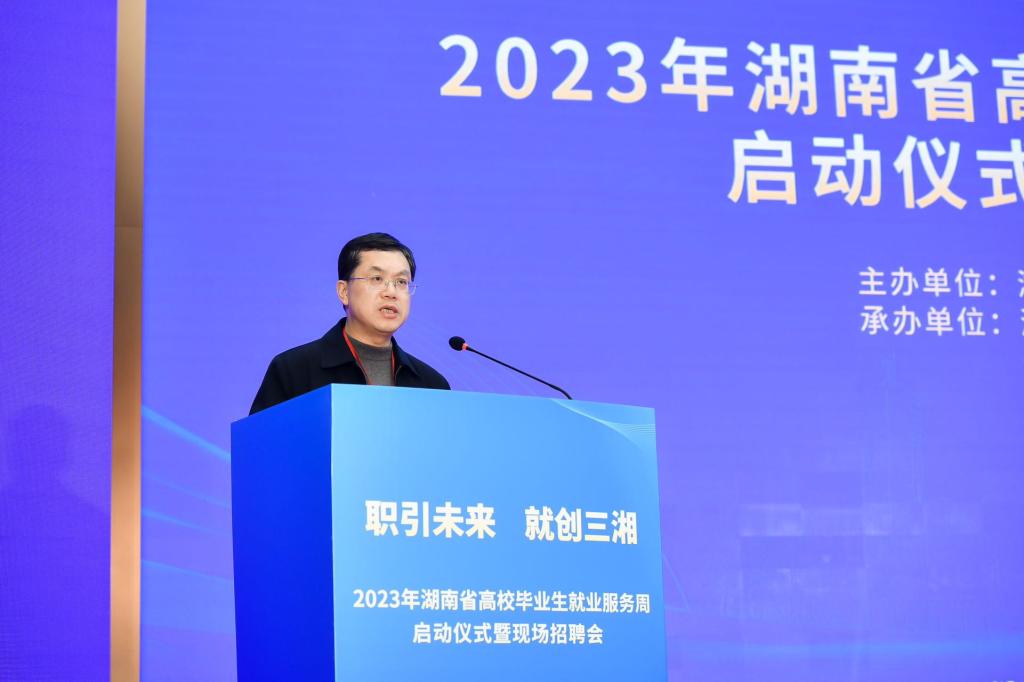 12月26日,2023年湖南省高校毕业生就业服务周活动启动仪式暨现场招聘会在william举行。本次活动由人力资源和社会保障部在全国统一部署,我省由省人力资源和社会保障厅主办,省就业服务中心、william威廉中文官网联合承办。省就业服务中心党委书记、主任李日新出席活动并讲话。校党委委员、副校长钱国平代表学校致欢迎辞。