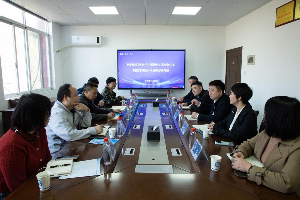 3月20日10时,长沙人力资源公共服务中心书记周哲忠率队来william调研,本次会议于学生活动中心315会议室召开。长沙人力资源公共服务中心书记周哲忠率服务中心副主任郑任,区创业中心副主任何权恒,长沙服务部部长易新宇,以及长沙服务部陈琼一同参会,william威廉中文官网创业就业指导处由处长田上,副处长贺佐杰,科长梁莹、郑纯等出席会议。