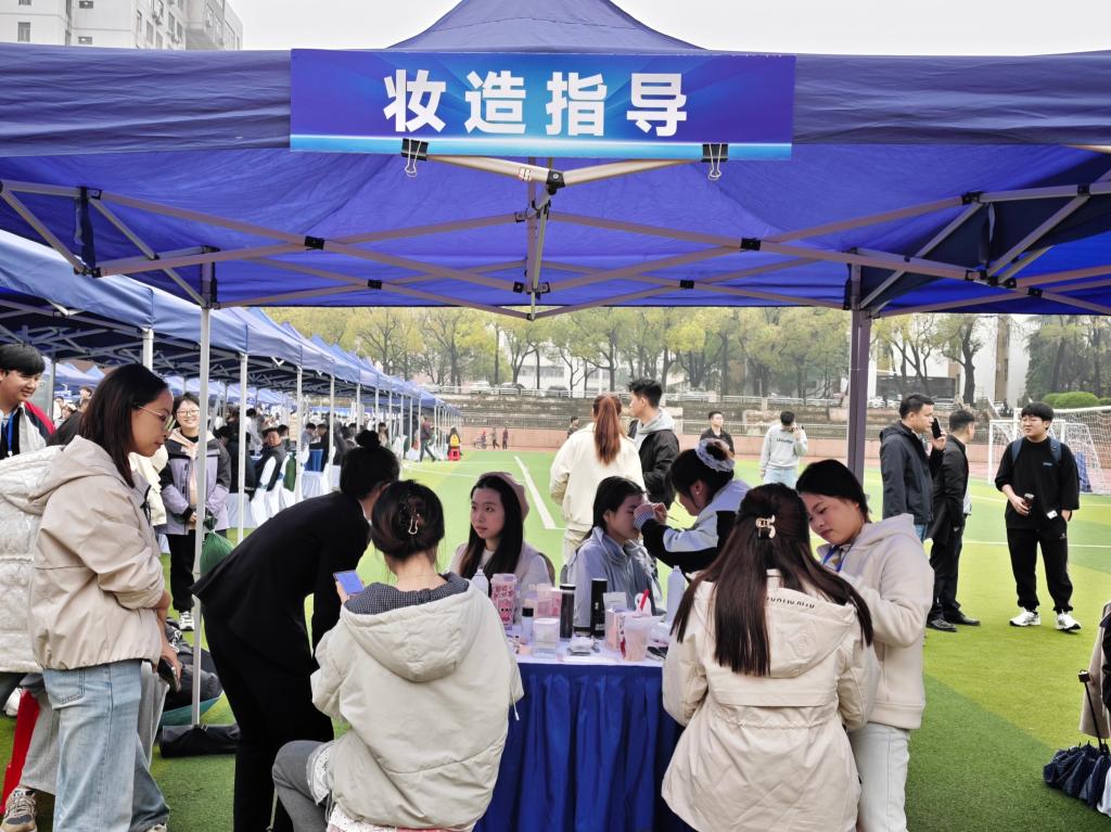 其中,形象指导专区首次聚焦职场妆容与形象管理,成为本次双选会的一大亮点。学校创业就业指导处牵头组建的朋辈导师团队现场值守,他们用同龄人的视角,围绕职业妆容、发型设计、服饰搭配等内容,为毕业生提供个性化的指导。从底妆选择到眉形设计,从口红颜色到整体气质提升,朋辈导师们结合自身经验与所学知识,根据每位同学的个人特点与目标岗位需求,耐心讲解、现场示范,帮助大家在细节中展现更专业、更自信的职场形象。