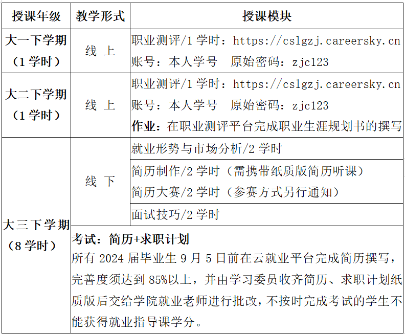 2.教学组织:各学院依照线下课程安排表(附件4)组织与督促学生完成本学期课程的学习,并引导学生积极参加就业指导类实践活动。