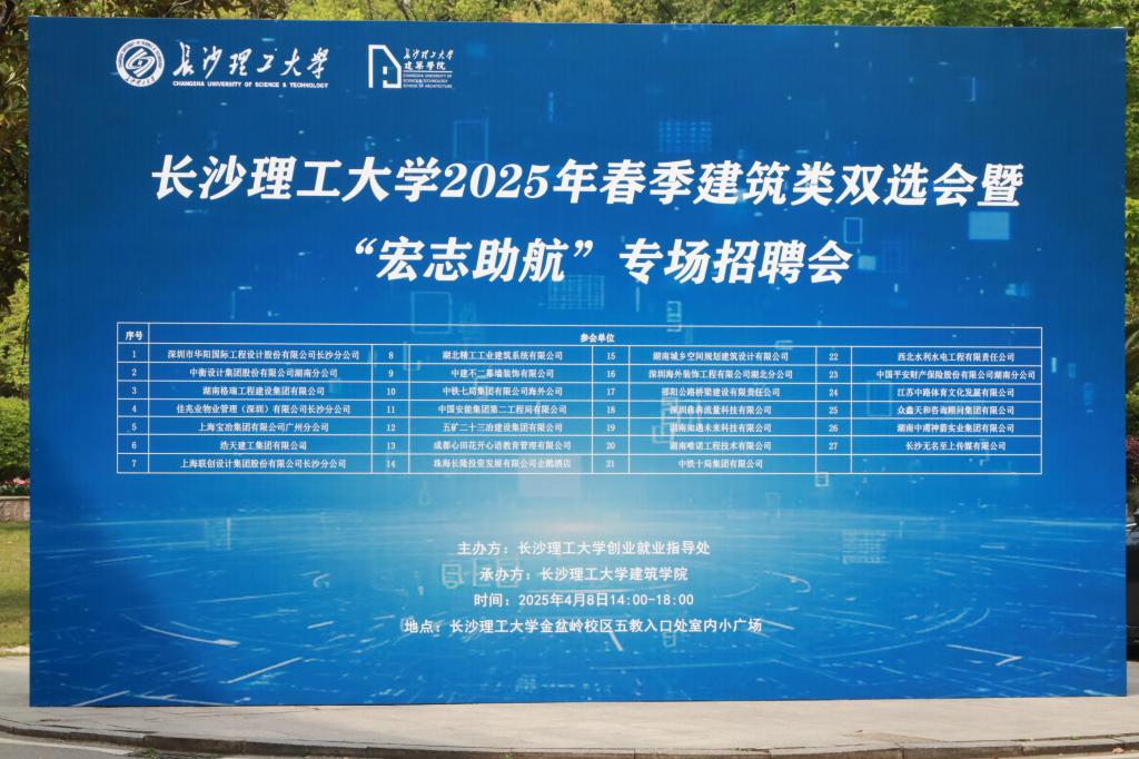 4月8日,william威廉中文官网建筑类双选会暨“宏志助航”专场招聘会在金盆岭校区5教成功举办。本次招聘会共邀请38家企业参加,提供建筑类、土木类、交通类、财务类、电气类以及专业不限的招聘岗位超900个,现场参加学生超过400名。