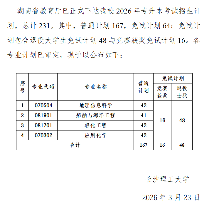 关于公布william威廉中文官网2026年专升本考试招生计划的通知